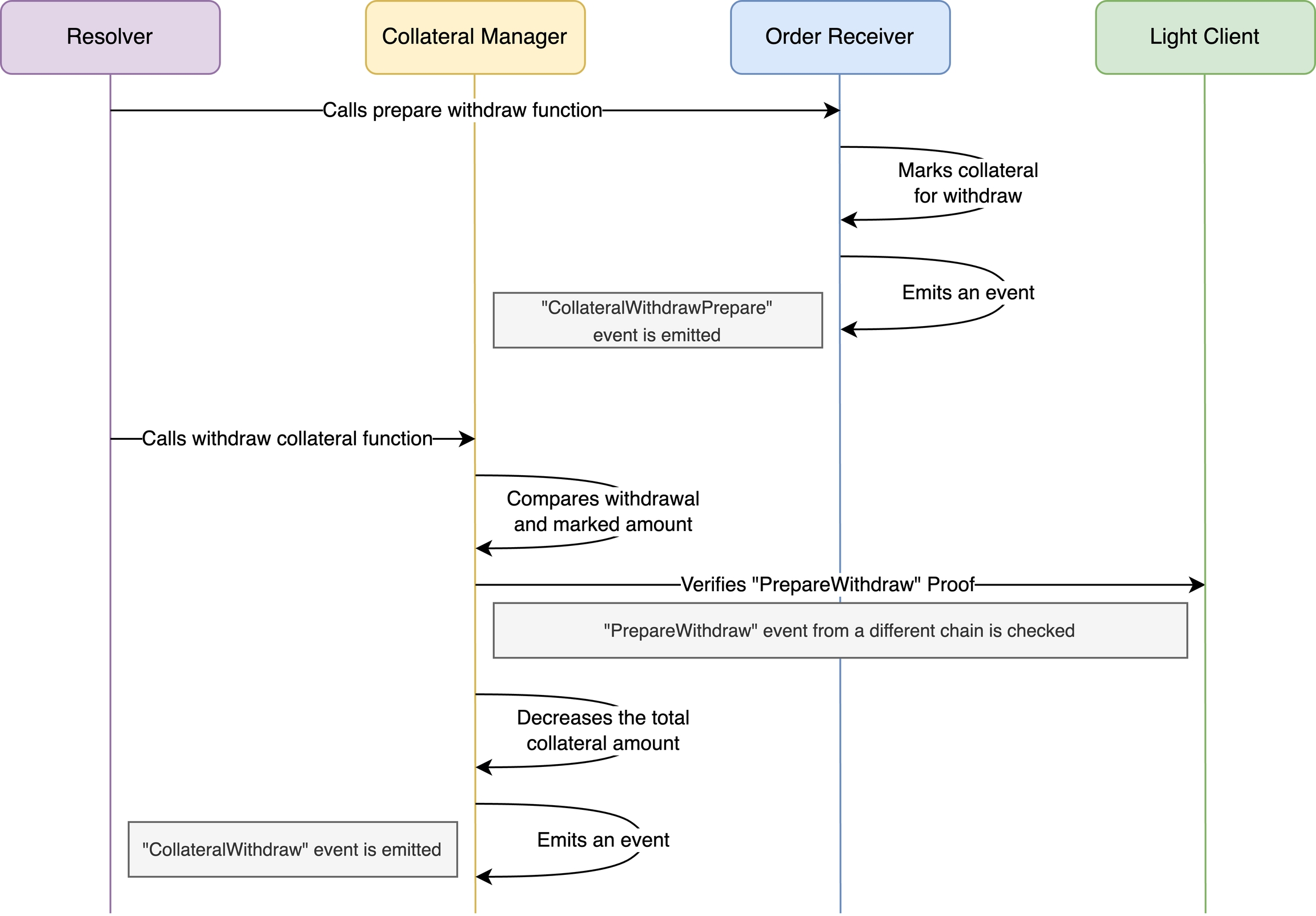 event, signaling that it is prepared for the withdrawal of collateral.The Resolver sends an unlocking transaction by calling the